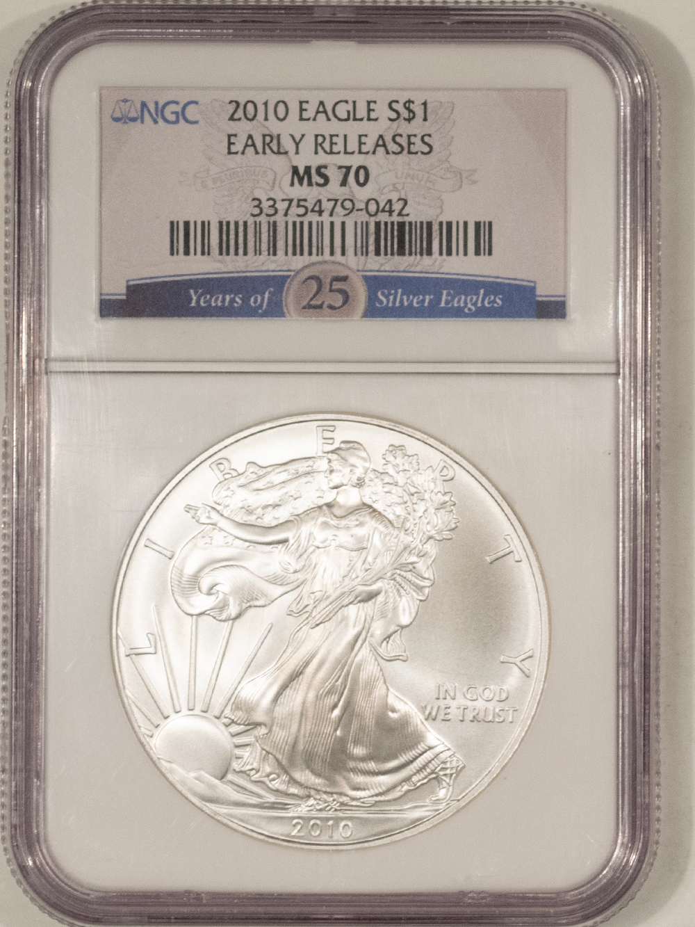 This is a 2010 $1 AMERICAN SILVER EAGLE, 1 OZ .999 – NGC MS-70, EARLY RELEASES! Our commitment is to provide you with quality coins and collectibles at the best possible prices. This piece is no exception. Please note, the coin and collectibles markets do fluctuate, and prices occasionally will change. In this rare circumstance, we will contact you first to verify your order.