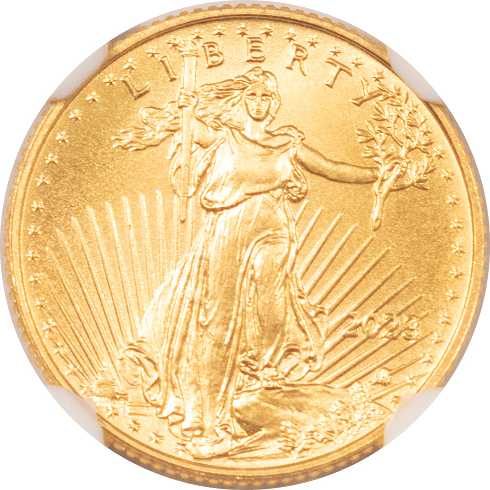 This is a 2023 $5 AMERICAN GOLD EAGLE, 1/10 OZ – NGC MS-69. Our commitment is to provide you with quality coins and collectibles at the best possible prices. This piece is no exception. Please note, the coin and collectibles markets do fluctuate, and prices occasionally will change. In this rare circumstance, we will contact you first to verify your order.