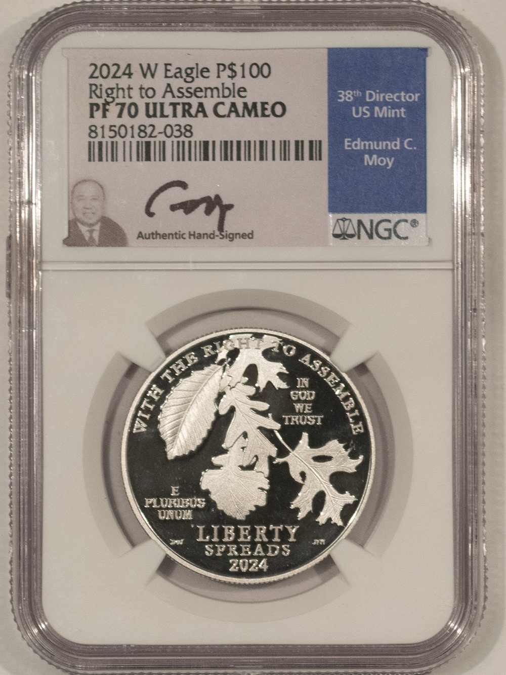 This is a 2024-W PROOF $100 1 OZ .9995 AMERICAN PLATINUM EAGLE, RIGHT TO ASSEMBLE – NGC PF-70 ULTRA CAMEO. Our commitment is to provide you with quality coins and collectibles at the best possible prices. This piece is no exception. Please note, the coin and collectibles markets do fluctuate, and prices occasionally will change. In this rare circumstance, we will contact you first to verify your order.