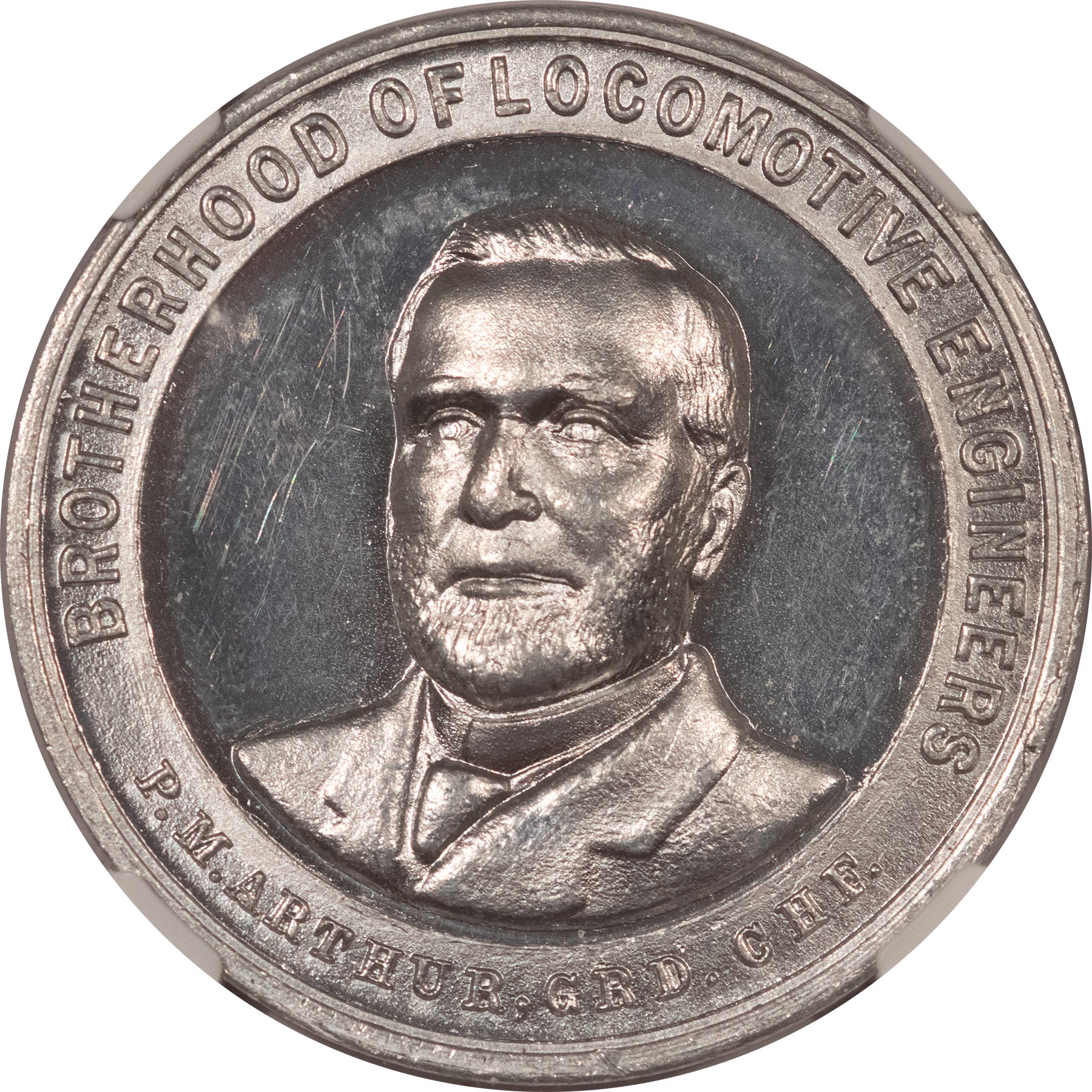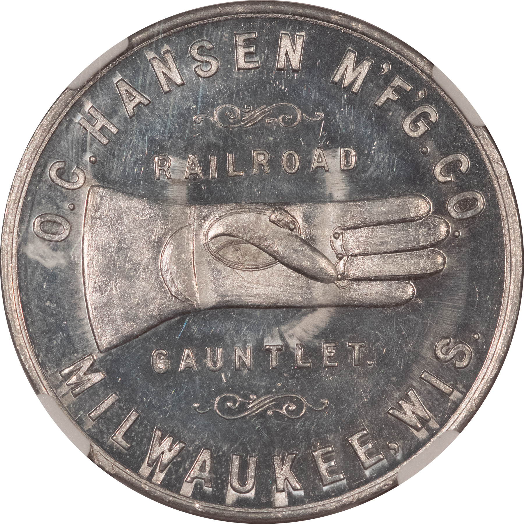 This is a UNDATED (PROBABLY TURN-OF-THE-CENTURY) O.C. HANSEN MFG CO, BROTHERHOOD OF LOCOMOTIVE ENGINEERS, “RAILROAD GAUNTLET” ALUMINUM MEDAL, 38+mm-NGC MS-64 DPL; LARGER SIZE & RARE! Our commitment is to provide you with quality coins and collectibles at the best possible prices. This piece is no exception. Please note, the coin and collectibles markets do fluctuate, and prices occasionally will change. In this rare circumstance, we will contact you first to verify your order.